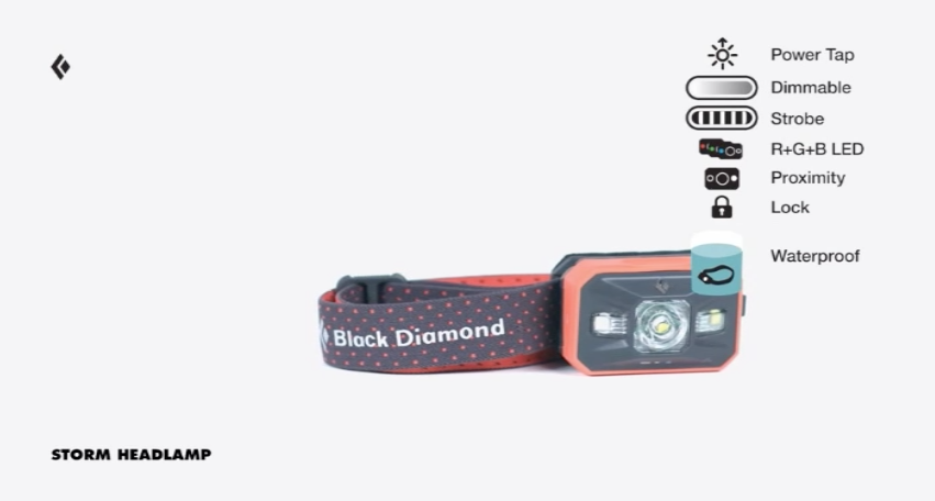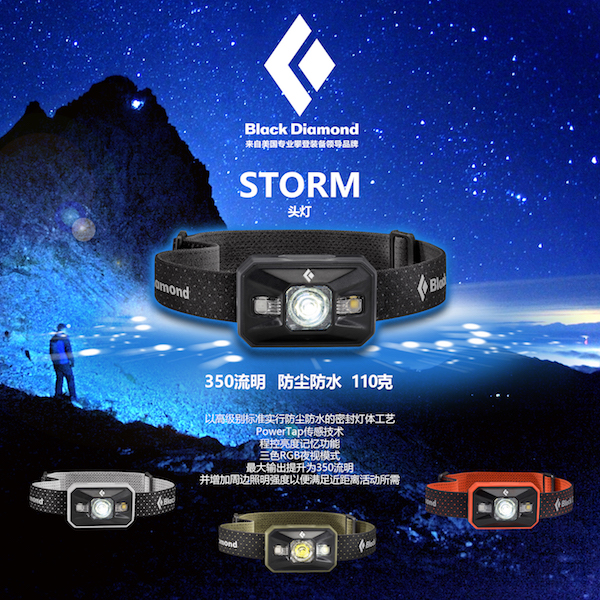 升级款Storm 头灯,以高级别标准实行防尘防水的密封灯体工艺,并配置PowerTap 传感技术,程控亮度记忆功能,三色RGB 夜视模式,最大输出提升为350流明,并增加周边照明强度以便满足近距离活动所需。