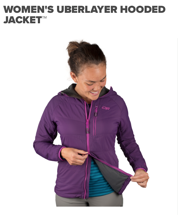 Uberlayer,灵活应对转变的动态隔热层,堪称时尚性野外变色龙,既能提供合成蓬松隔热层的保暖性,又具有抓绒面料的透气快干性能,无需不时穿脱衣物增减服装,是有氧攀登和滑雪健行的完美之选。