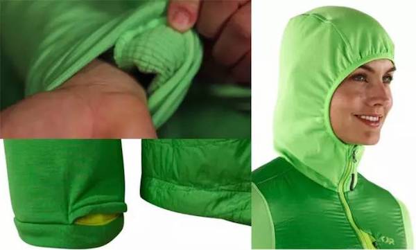 Pertex Microlight 20D 活动镜像弹性面料,抵御恶劣天气,随你而动;排汗、轻量的绒感Polartec Alpha Direct 隔热层,完美适于套在基底层上,甚至可以贴身穿戴。
