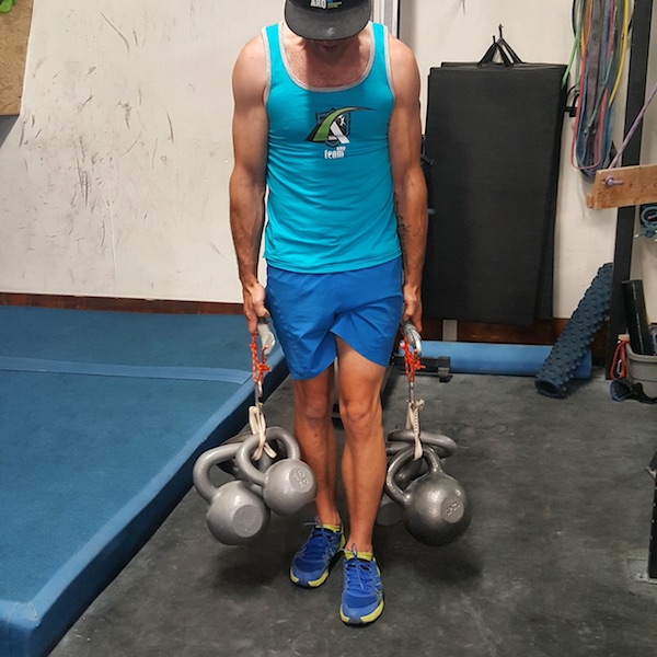 我和我的教练也想出一种模拟训练方式。抓住一个跟冰镐手柄差不多形状的棍子,然后增加负重,每个胳膊可能加上200磅吧;然后尽全力抓握住,我的手会慢慢被拉开,继续咬牙坚持,直到掉下来。我可以坚持30秒,做三到五轮,每周两次。