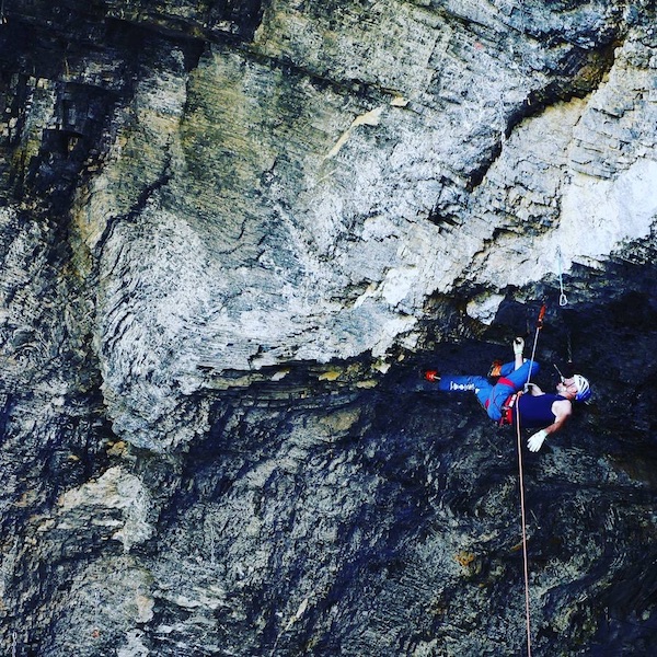 想象一下吧,D16 DryTooling 线路。80米长,从头到尾总共50把快挂。一半的攀登要用大头朝下的姿势完成!