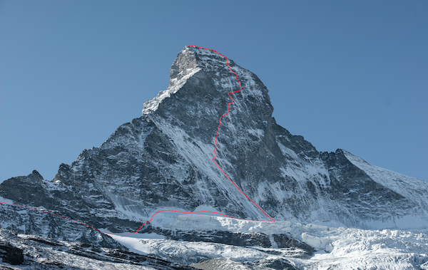 再说说这次爬的马特洪(4478m)北壁Schmid Route线路。定级TD WI4+ M5 高差1280米,技术部分高差1100米。
