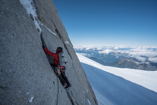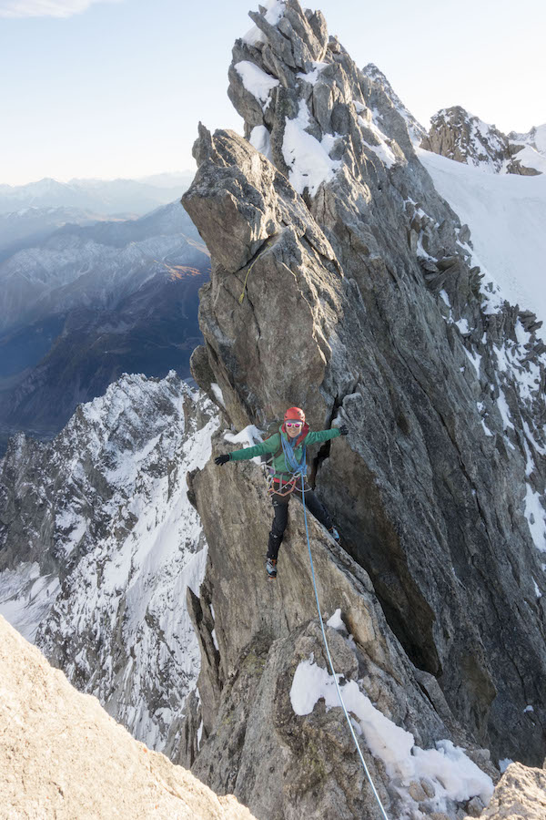 如果去阿尔卑斯,山脊上的功夫一定要修炼,绝对让你肾上腺素飙升。就算你攀岩能爬5.12,5.13的线路,在这种路线上说不定也会尿裤子。
