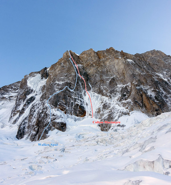 再比如就在Walker spur西侧一点的Colton-Macintyre线路,是一条冰槽线路,适合秋冬季冰雪状况好的时候爬。如果非要夏天去爬这条线路,那风险就会很高,夏天温度高,落石多。