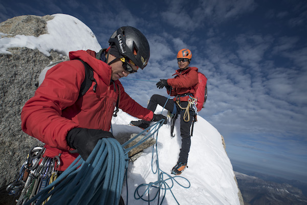 也就是说,一天完成这个线路里包含了2—6个小时的下撤(天气良好的时候2小时左右可以下到瑞士山脊中间木屋),留给北壁的攀爬时间并不长。整个北壁和山顶都不适合Bivy,北壁没有一处像样的平台,顶峰是一条一米宽左右的长条山脊。所以,一天爬完是没有选择的选择,如果爬不完,剩下的就是苦逼的熬了。