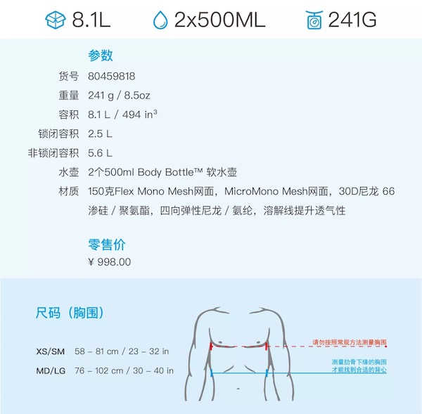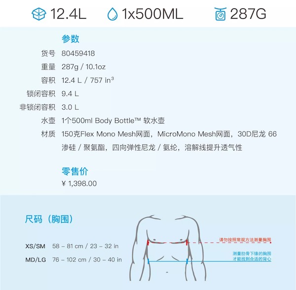使用场合:长距离赛事,自补给赛事和长距离训练