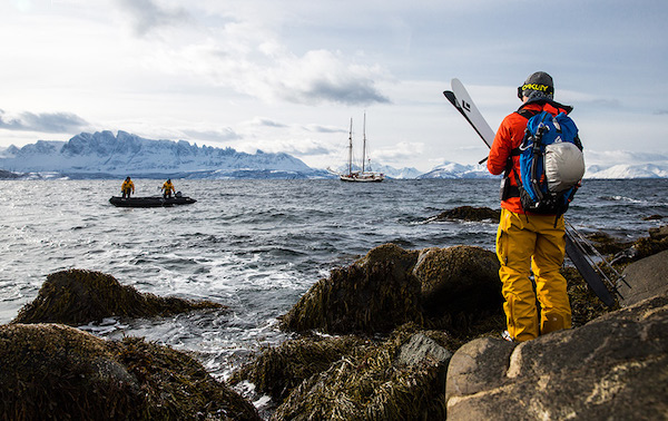 在挪威芬马克郡附近的北部群岛上,隐藏着巨大的潜力,可以开发出永无止境的滑雪探险线路。最大的难度在于如何达到这里,唯一的办法是乘船;想想看,在北冰洋上航行,你真的需要一条功能完备,装备齐全的船。我们的Opal,配置了电力引擎和作为后备的柴油引擎(并做好了使用船帆的准备),她是我们通向这片被遗弃的海滩的通行证。
