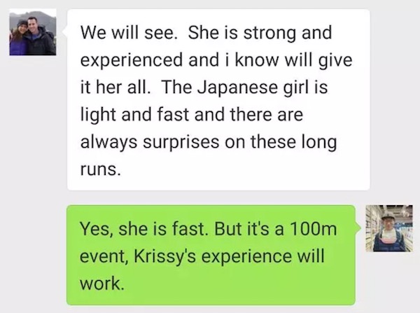 2013年UTMF夺冠之后,Krissy便很少参赛,她在越野跑运动中的主要身份转变为Chuckanut的赛事总监,她的参赛经历也越来越少,最近三年则只有三场比赛,今年2月份的Sean O’Brien 50M则是专门为高黎贡准备的训练赛。