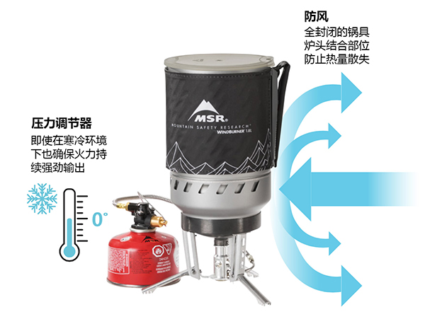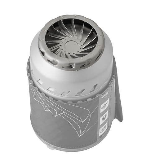 WindBurner的锅具底部将辐射燃烧器封闭起来,最大化地将热量传导到锅上,烧水更快,燃料更省。