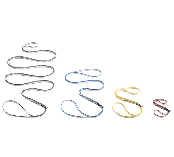 从前,大家都是自己打结做扁带圈。如今,机制扁带圈更为常见,通常它们采用尼龙或者 Dyneema/Spectra/Dynex(其实这些都是同一种东西)制作。