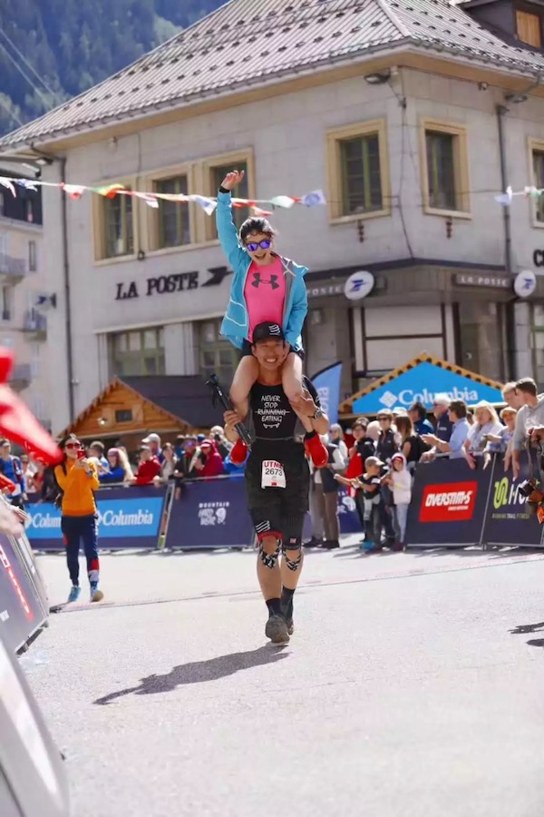 如果你有关注去年的UTMB冲线,你会发现这样一个画面。阳光之下,一个完赛UTMB的选手,肩上架着一个女孩,在众人的目视祝福之中,激动洋溢地冲向终点线。这个女孩就是Vicki,那一刻,她仿佛回到多年以前那个奔跑在操场上的小姑娘,天真浪漫,笑得很得意......