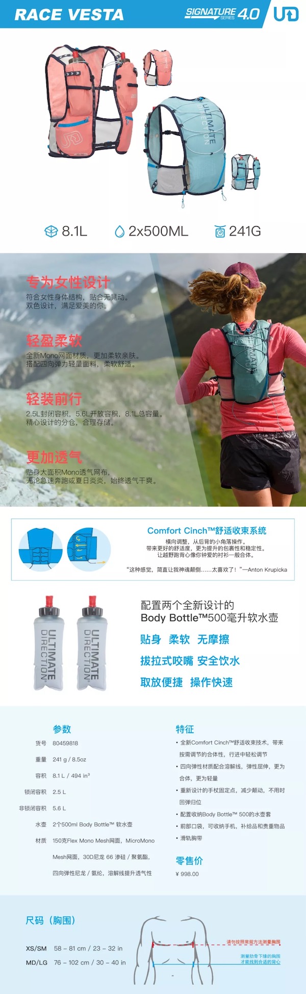 2018,UD签名款背心进入4.0时代。更加值得期待的是,我们迎来了全新的女性越野跑补水背心。依然由女性、专为女性而设计。