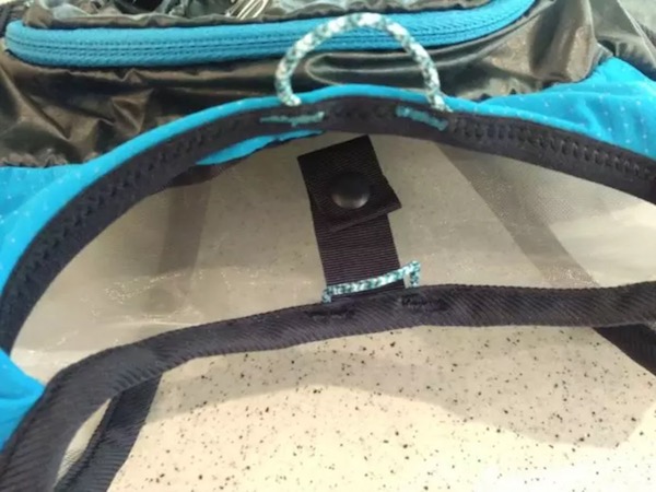 水壶仓外侧和下侧的口袋,延展性超好,特别能装:能量胶、便携式折叠水杯、手帕纸、各种补给统统都可以塞下,一个都不会少。这也是我最喜欢这款包的特点之一。