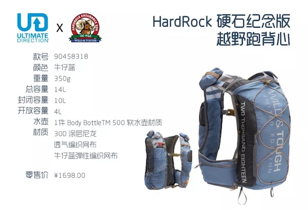 Ultimate Direction 作为 HardRock 的官方赞助商,一直和 HardRock 有着紧密的合作和联系。2016 年赛事冠军 Jason Schlarb 也是 UD 赞助运动员,同时,从 2015 年开始,UD 每年都会推出 HardRock 纪念版越野跑背心。