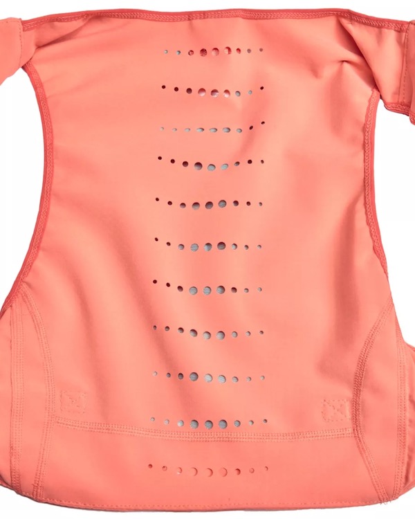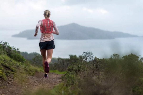 说到擦痛,我从来没有只穿运动 Bra 奔跑过,但这款跑步背心几乎让我有了尝试的念头。它就像最柔软、最顺滑的纤薄款技术性运动吊带背心。目前,这款跑步背心只有珊瑚色,不过灰色的点缀和银色反光条看起来很靓;所以,从外观和性能的综合视角来看,我十分乐于在野道上使用这款背心。