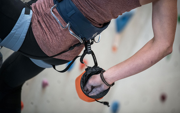 参考以上因素,经验法则是:让镁粉袋悬挂于跟安全带的腰带差不多高度的位置,这样能带来最大化的效率。