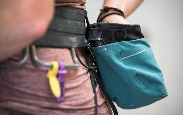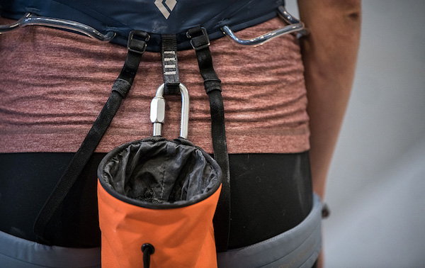 到攀岩馆走一圈儿,你会很快确认这个现实。看见了吗?为什么那么多的镁粉袋在可疑的低位不停晃荡?因为它们是用铁锁扣挂到安全带上的。我们的攀登品类总监,装备博学家Kolin Powick,在结束晨练之后,常常怀着重被激发的恨铁不成钢的痛心:攀岩馆的年轻人,总是不使用扁带腰带,让镁粉袋垂在下面乱晃悠,把本可以很简单的事情搞得很复杂。