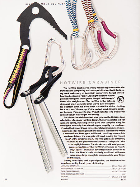 Black Diamond 在1995年冬季目录册中,推出HotWire丝门锁,