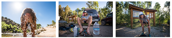 实际上我频繁使用了第三个水壶,因为天气太热了。我把过滤的水背在包里,前面两个水壶装Tailwind 饮料。