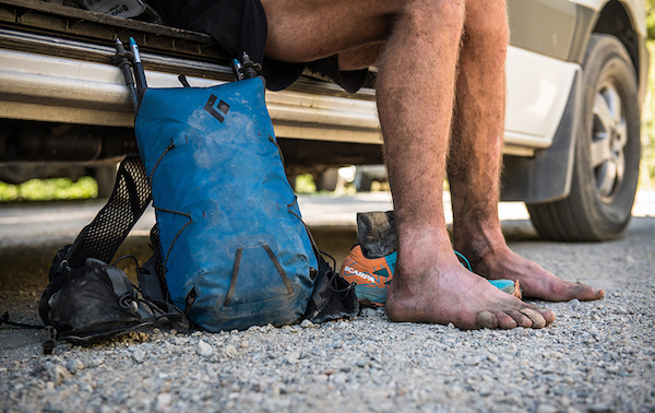 嗯,我大概带了7000卡路里热量的食物。其中一半是粉状饮料Tailwind,然后是10根能量棒,好像4根Bobo,六根Macro 吧。还有一小袋密封袋装的什锦杂果,三份帮助恢复的蛋白饮料,以便在行动中犒劳自己。回顾起来我觉得应该多带点蛋白饮料,它们很有用。喝下去之后我反应良好,喝完后状态恢复得很好。我觉得如果少带点运动饮料,多带点蛋白饮料可能会更好;我并不是纯粹为了快速而奔跑,令人满足的食物会带来更多享受和乐趣。