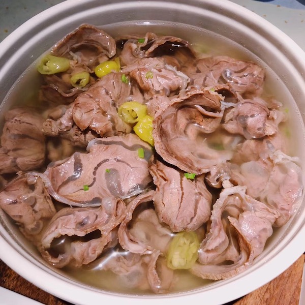 晚餐时间,小A带我来到山舍不远处的桂语山房。泉水牛肉真是连汤都好喝。