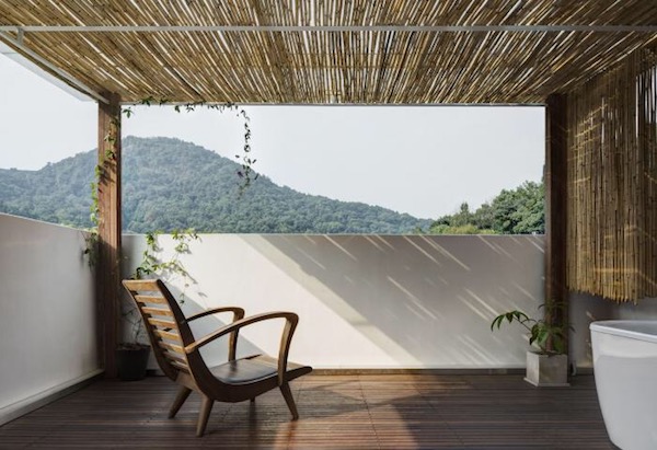 走过熟悉的上满觉陇,到达山舍酒店,入住在几何生活上早就预定好的山景露台榻榻米房。