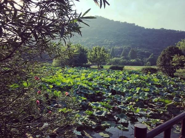 从白塔公园出来 1km 左右,我们首先会跑进位于玉皇山南麓的八卦田遗址公园。八卦田种着八种不同的庄稼,一年四季颜色不同,是古代帝皇举行农耕仪式的场所。盛夏时节,接天莲叶无穷碧。