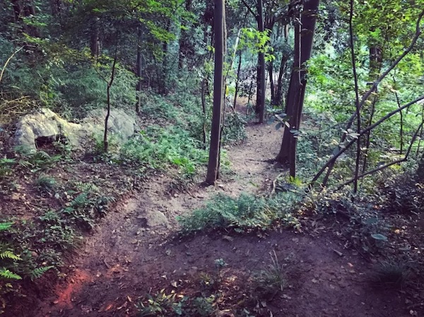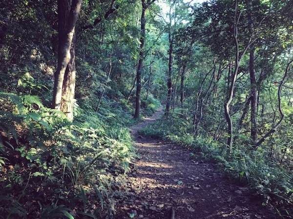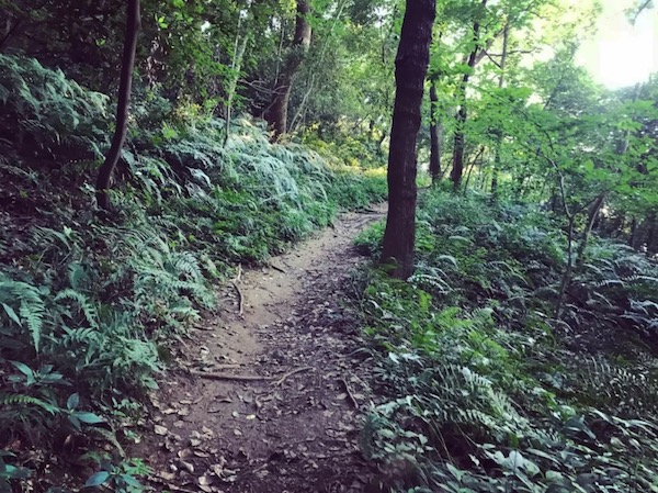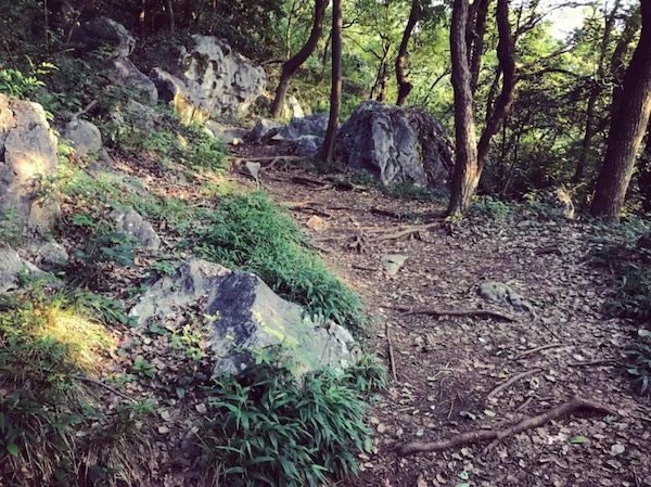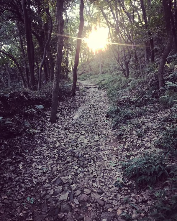 跑出八卦田到南复路,在停车场处左侧转弯 200m 就到了上山的路口 (离起点 2km 左右)。体验赛道时刚值盛夏,土路已经杂草丛生,蚊虫较多,但路线还是比较明显。
