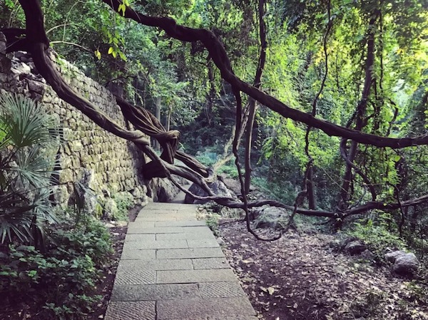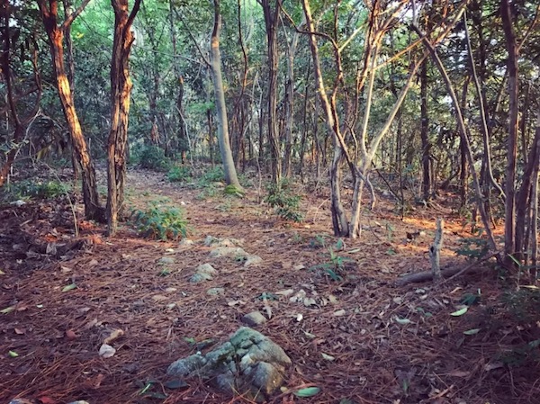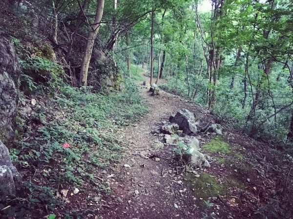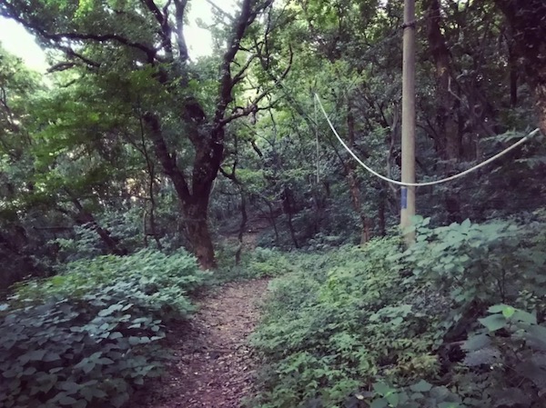 下一小段台阶就到了亭子,进了亭子转右侧,但不是继续下,而是注意这个地方有个隐蔽的土路入口。现在杂草比较茂密,不易发现。但到了威斯赛的时候,经过修剪之后应该还是好走的。