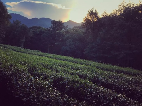 下坡不长,到底是一片大茶园,这时切记是要往左侧土路走。右侧是逆行标毅线到四眼井的。