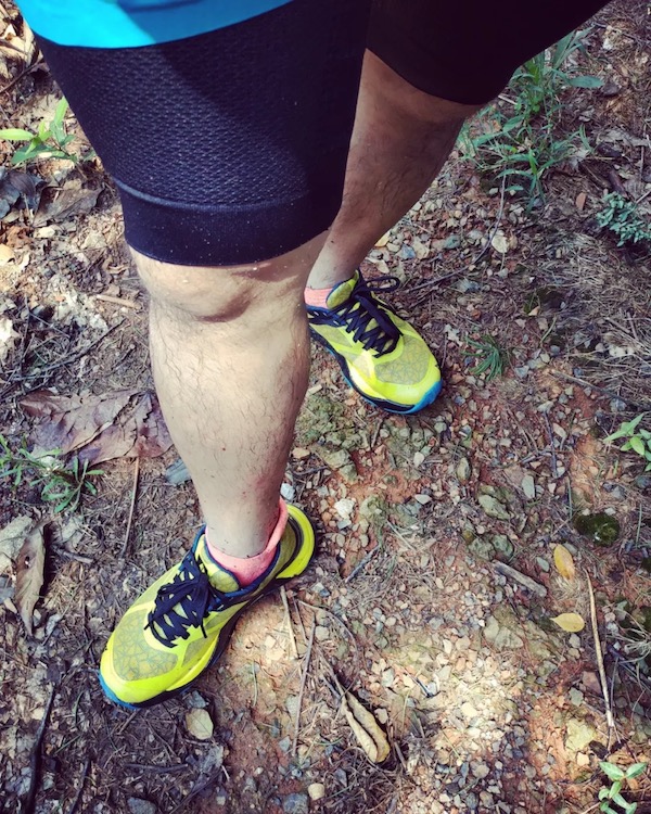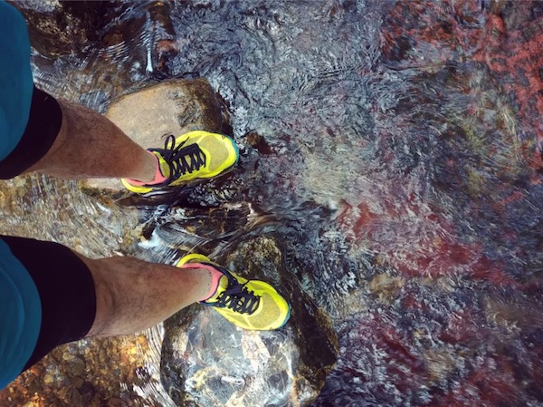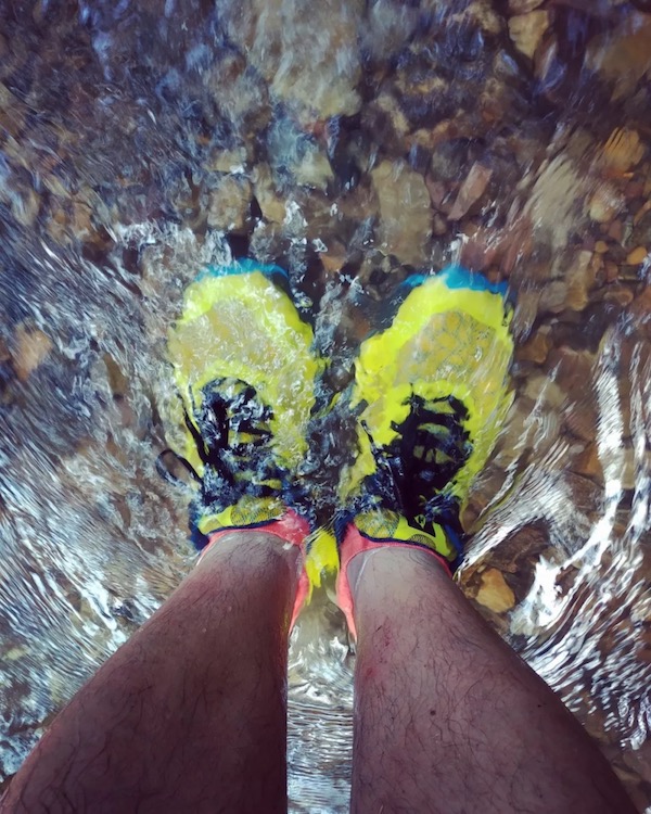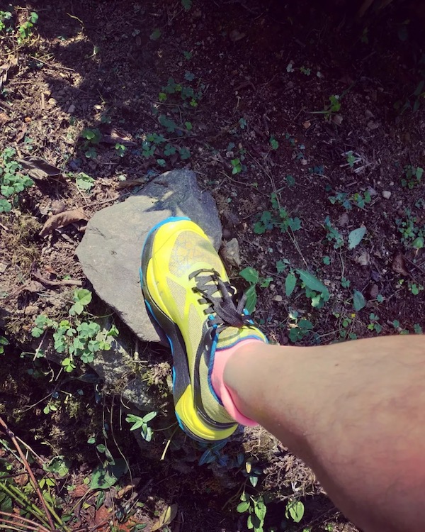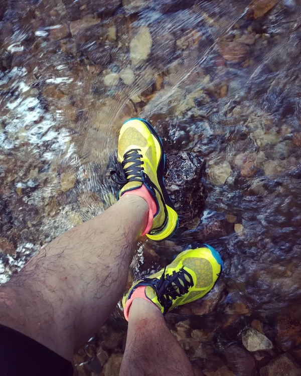 从溪水中出来,沿着碎石路一路小跑,不一会鞋子就干了。虽然温度高是一个原因,但也能看出 TB II 在涉水之后可以迅速排干,配合 Balega 袜子可以做到真正的速干,担心湿鞋后容易摩擦起泡的跑友可以放心了。