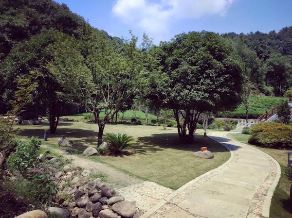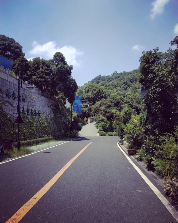沿着山腰跑了一段之后就要下山了。山下就是九溪。按照比赛线路,此处应该右转,绕经五云山后到达林海亭。