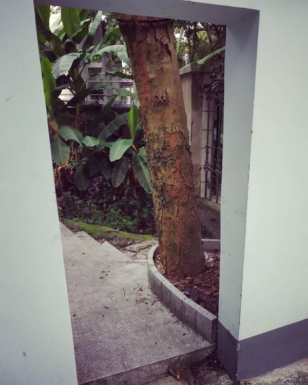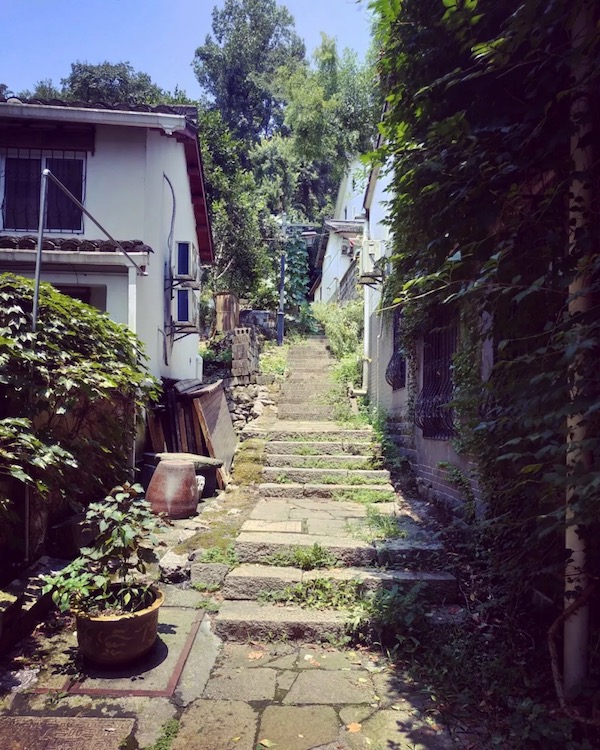 然后继续下行,不一会就又看到游步道了。沿着游步道往左贴着房子往前就是满觉陇了。