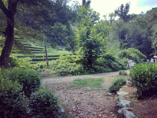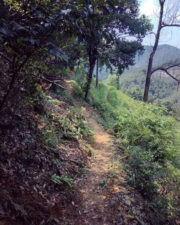 我穿的 TB II 应对这样的路况非常 easy,继续小步跳跃着往下。不久会遇到一个很小的爬升,到达一片茶地。