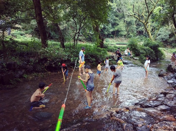 从九溪切到林海亭这段不算正式比赛线路,本来想略过的,但是无意中测试了 TBII 的涉水体验。沿路的小溪有很多孩子在玩水,我看得兴起,也跳到小溪里泡了一会。天气热,跑到这的时候已经完全湿身了,本来干爽的鞋子,也被滴下的汗打湿了,索性穿着鞋泡在了水里,一解暑热。