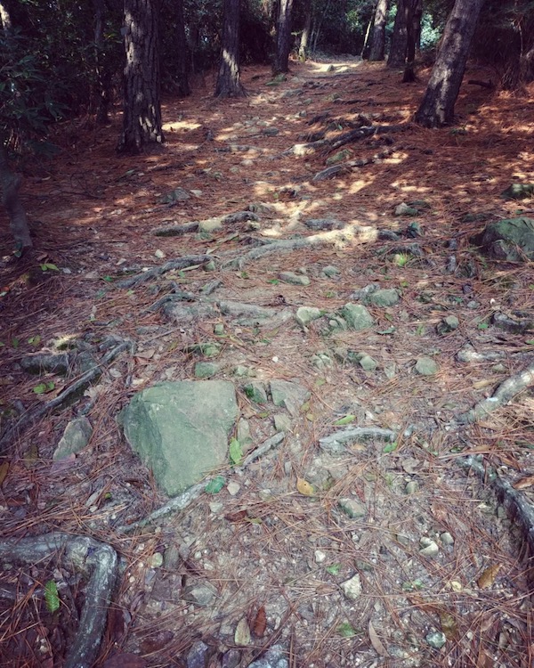 跑了一段土路和游步道之后,是一段凹凸不平的石头路,换了别的鞋可能有些硌脚,今天穿的 TB II 正好是厚底,照样轻松应对。