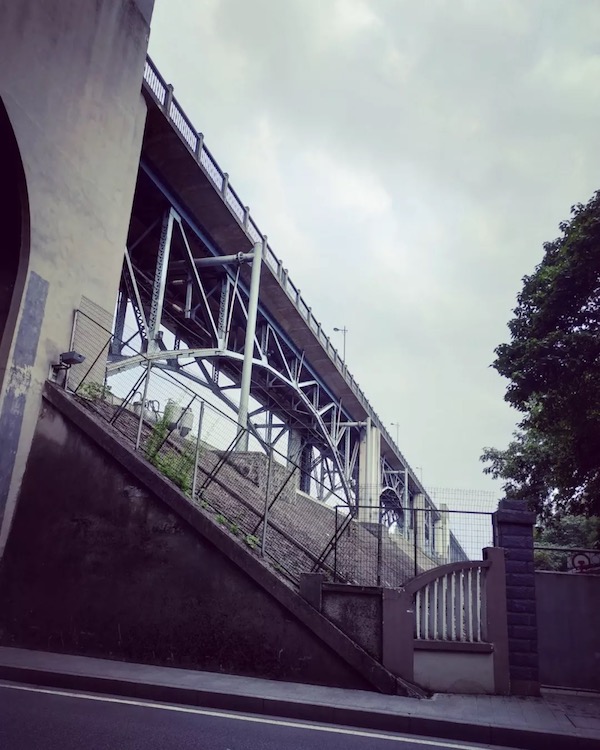 继续往右下行,就到了马路上,此时可以看到著名的钱塘江大桥。