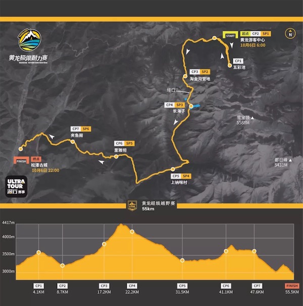 黄龙极限耐力赛将于 9 月 30 日至 10 月 7 日在四川省阿坝州松潘县黄龙景区举办。赛事分设 UTHL( 个人组55km )、XBD( 双人组31km+24km )以及都日峰登山大会三个组别。