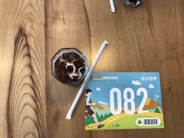 4、回到山舍酒店咖啡馆,领取完赛纪念,同时,还可半价购买美式咖啡一杯。