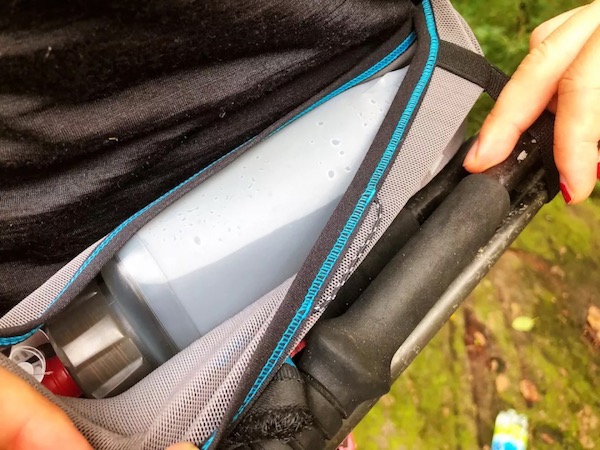 后侧口袋开口下方均为 23cm,足够塞一个 500ml 软水壶。
