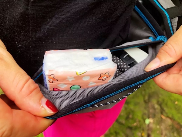 左侧口袋下方均为 12.5cm,餐巾纸和头灯轻松塞进。