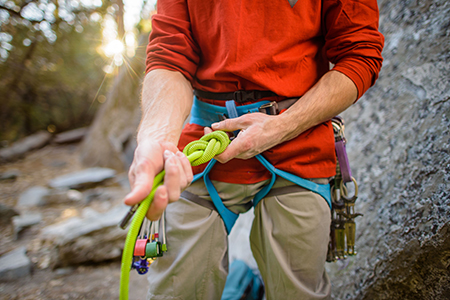 用绳结连接安全带的时候,你是从上往下穿绳子呢,还是从下往上穿入?这是本期装备奇谈将要探讨的问题:我们将研究绳子穿入安全带的不同方式,并试图探索哪种方式更为安全。