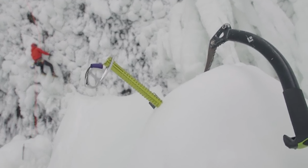 最终,我完攀了疯狂大仰角喷溅冰线路的第一段,期间采用了一些非同寻常的保护方式:比如Spectre 冰钩和用超长冰锥固定的Cobra 冰镐这种超级搭配,以及四个V 形冰洞,另外尼亚加拉铲头冰钩表现也不错,虽然因为前车之鉴我没敢在它上面做冲坠检测。