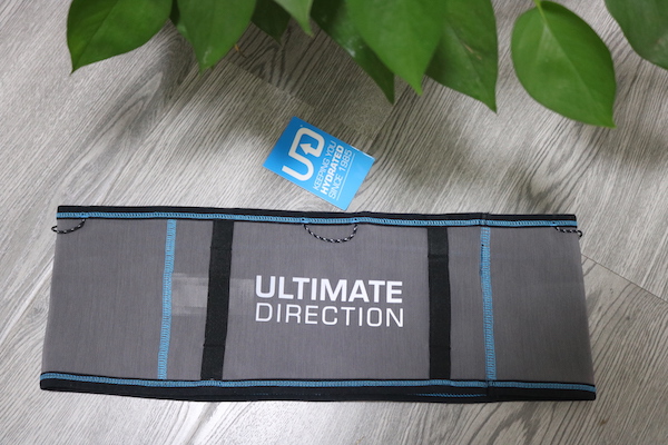 前后印有品牌LOGO:Ultimate Direction和简写UD,如果在夜晚奔跑,前后LOGO具有反光效果,在夜晚提醒人们注意避让。