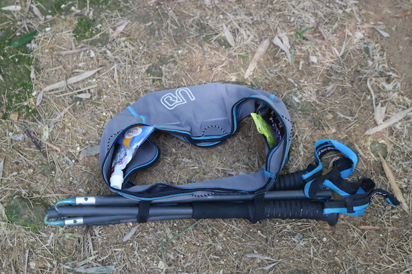 由于赛事出于环境保护禁止携带登山杖,因此在赛事中没有携带,但在平时上山过程中发现:当你使用途中想要安放登山杖时,可能要花费一些时间来固定,这个跟熟练度也有关系。