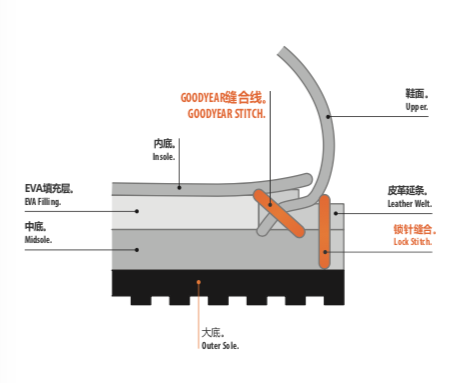 Goodyear 延条构造的主要优点是,其柔软度和屈伸灵活性,让鞋子从你购买的时候起就超级舒适。