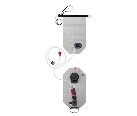 饮水,就必须保证水质洁净安全。Trail Base滤水套装主要由TrailShot微型滤水器和两个储水袋组成,在越野跑、健行徒步等运动路线上只需携带TrailShot就能保证补给净水,而回到露营营地,只需将其快速连接到两个储水袋上组成重力系统就能进行大流量滤水,从一种模式变为另一种模式的模块化操作简单而快速。