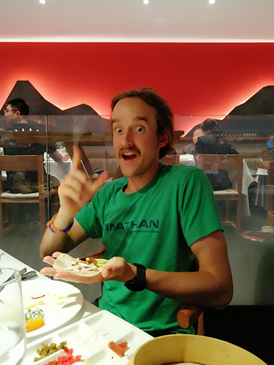跟Hayden接触过的人都知道,跟他聊天特别愉悦。许多运动员跑得非常好,为人也特别谦虚低调,但惜字如金往往也是他们的特征之一。Hayden虽然是顶尖跑者,但是他有非常开放的心态和愿意尝试不同事物的兴趣,事实上他也是这么做的。比如,在临海的理发店剪了个头发,吃了四川火锅,在北京喝了豆汁儿和烤鸭。比赛补给策略?看起来也是比较任性的。不信你往下看。