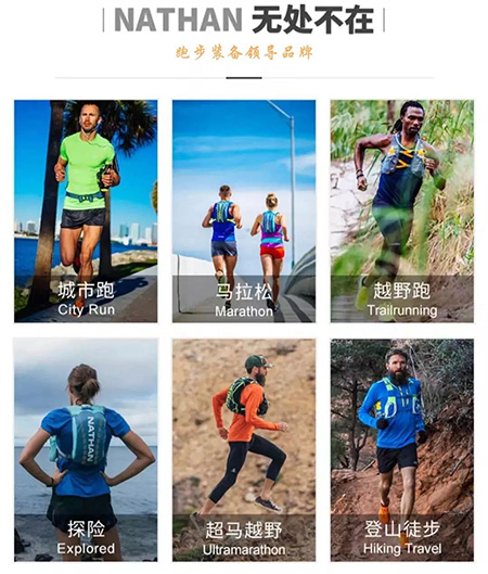 不论是行业领先的背心式   水袋背包、水壶腰带、手持水壶,还是动态可视装备和荧光可视背心,NATHAN都致力于将运动用品带给人们的舒适度达到最高,进一步提升运动时的乐趣。而产品时尚的外型与领先的功能设计让Nathtan深受广大运动爱好者的喜爱。