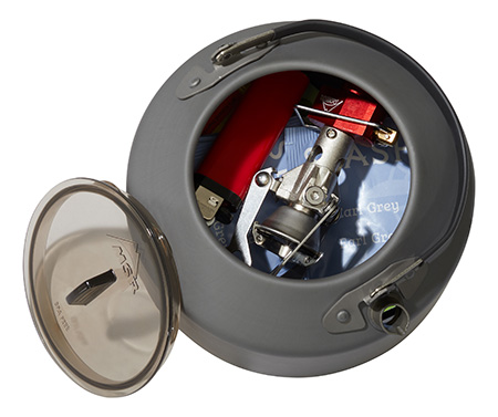 大口径壶口,清洗方便,携带时还可以向壶内放入带盒的 PocketRocket 2 或是 PocketRocket Deluxe 炉具,以及咖啡、茶包。